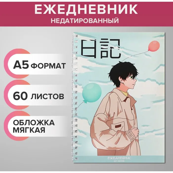 Ежедневник недатированный на гребне, А5, 60 листов, мягкая обложка «Аниме. Мальчик», в точку — Характеристики