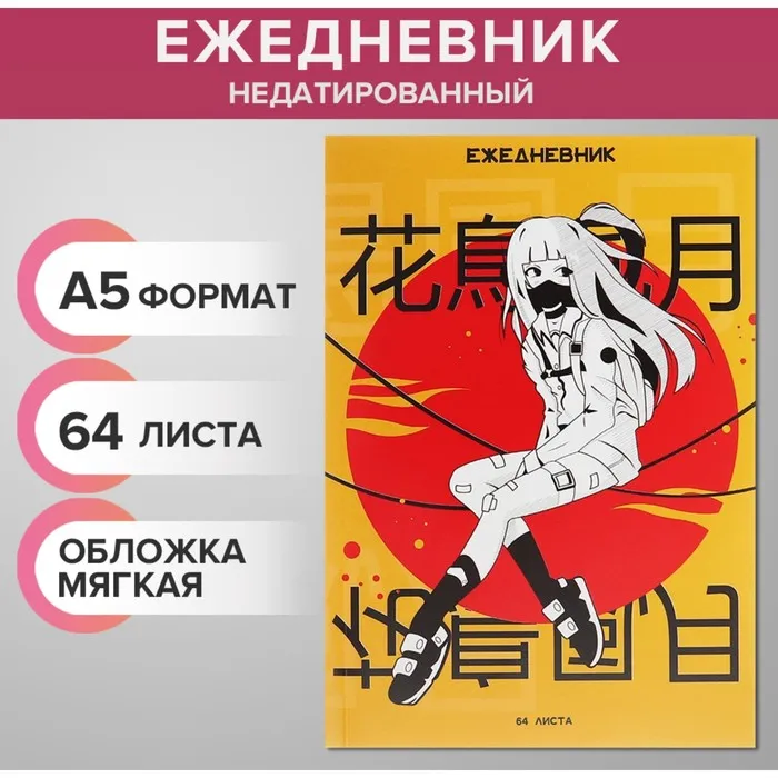 Ежедневник недатированный на склейке А5, 64 листа, мягкая обложка «Аниме. Девочка» — Характеристики