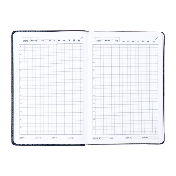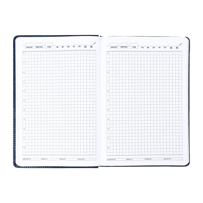 Ежедневник недатированный, обложка ПВХ, формат А5, 140 л, клетка, металлик Синий — Характеристики