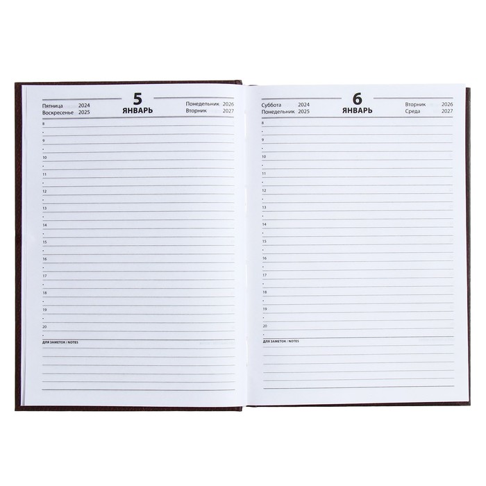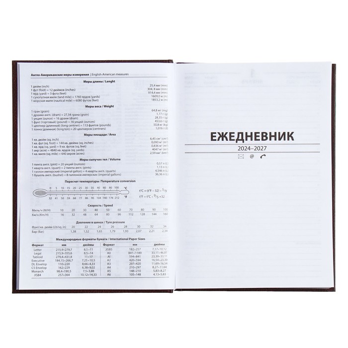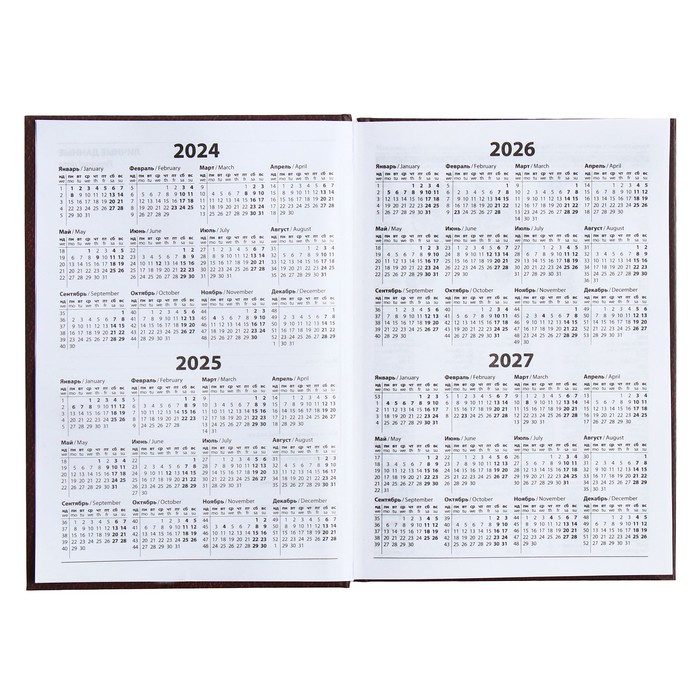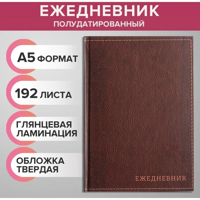 Ежедневник полудатированный на 4 года А5, 192 листа "Кожа", твёрдая обложка, шёлк, коричневый — Характеристики