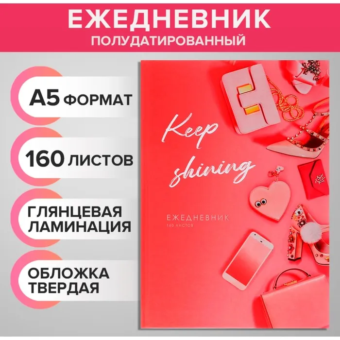 Ежедневник полудатированный на сшивке, А5, 160 листов, картон 7БЦ, Атрибуты современности, глянцевая ламинация — Характеристики