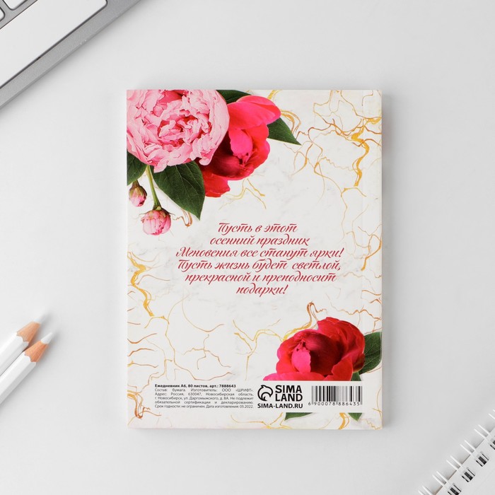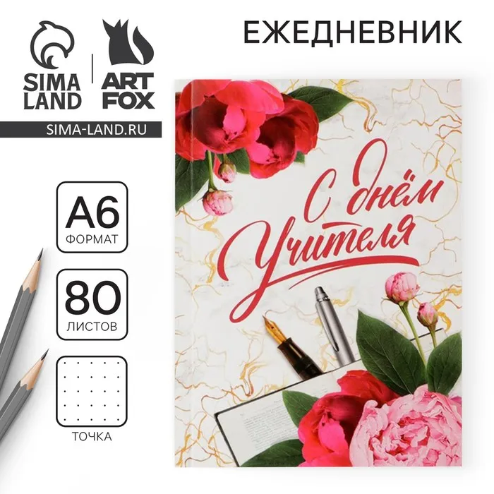 Ежедневник «С днём учителя», мягкая обложка, формат А6, 80 листов — Характеристики