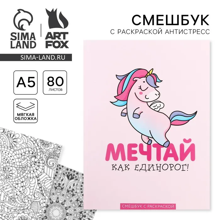 Ежедневник-Смэшбук с раскраской антистресс А5, 80 л «Мечтай как единорог!» — Характеристики