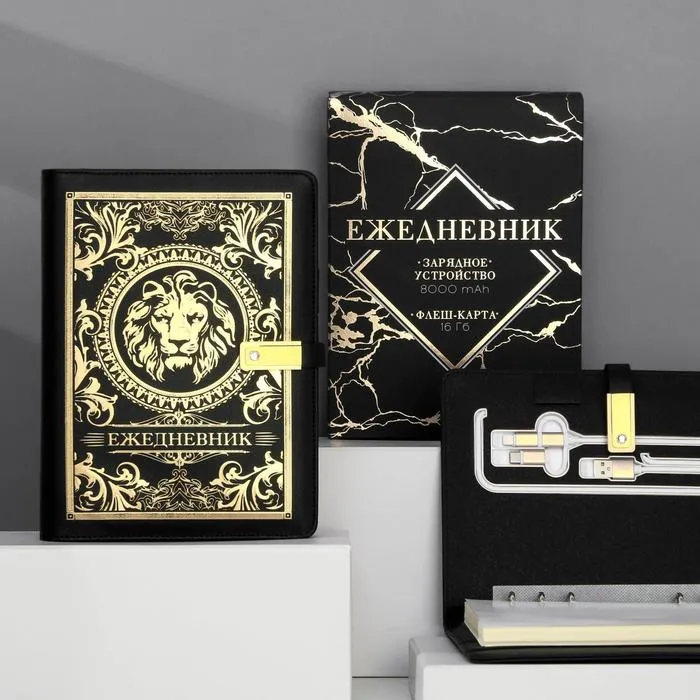 Ежедневник со встроенным зарядным устройством 8000 mAh и флешкой 16 ГБ «Лев», 17,5 х 23,5 см — Характеристики