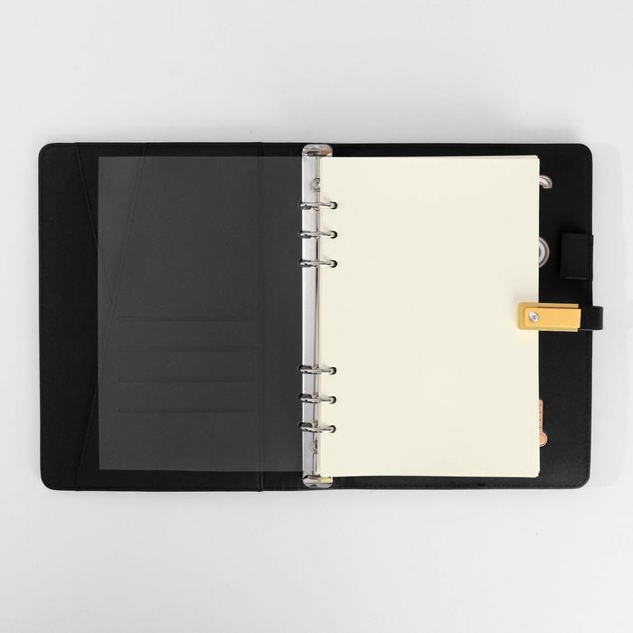 Закрывается ежедневник на магнитную ленту-застёжку, на которой помещается флеш-карта на 16 Гб.