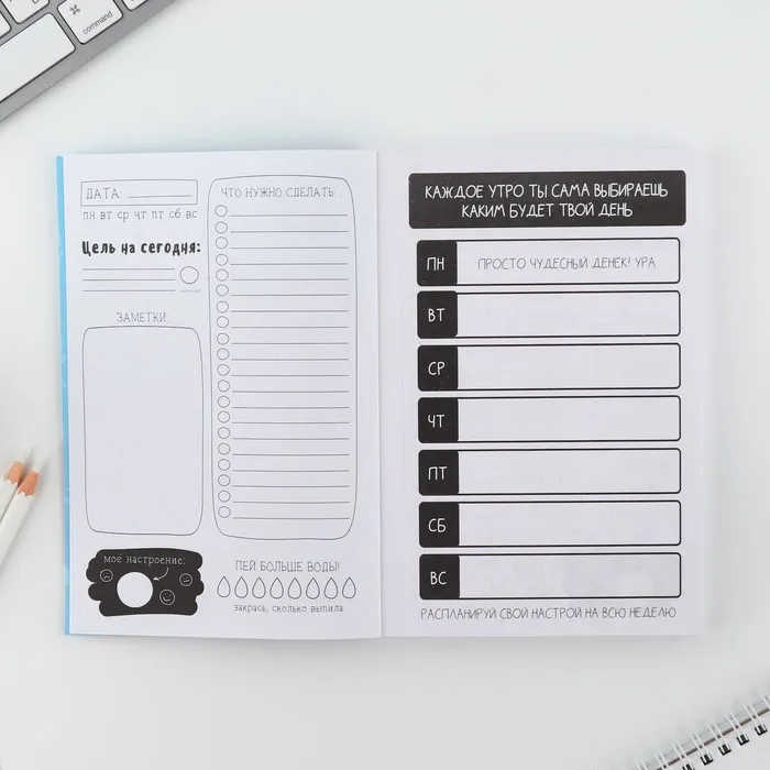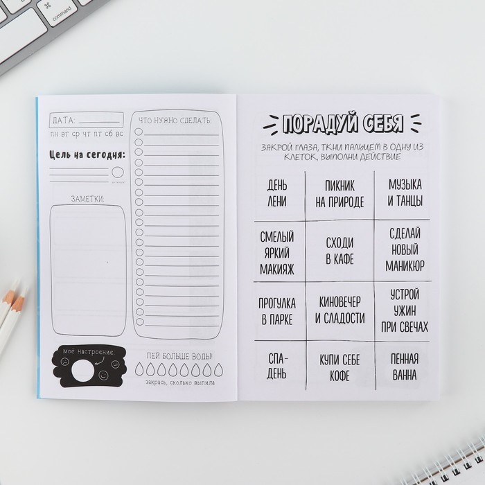 Этот дневник поможет составить план на день и всегда иметь под рукой список самых важных дел, а ещё станет вашим незаменимым помощником, когда вы захотите отвлечься, развлечься и немножко пошевелить мозгами.