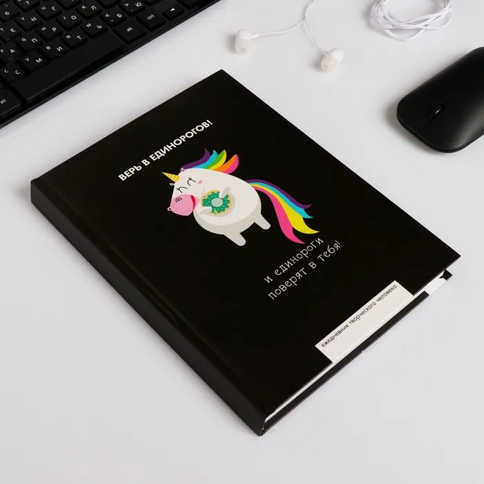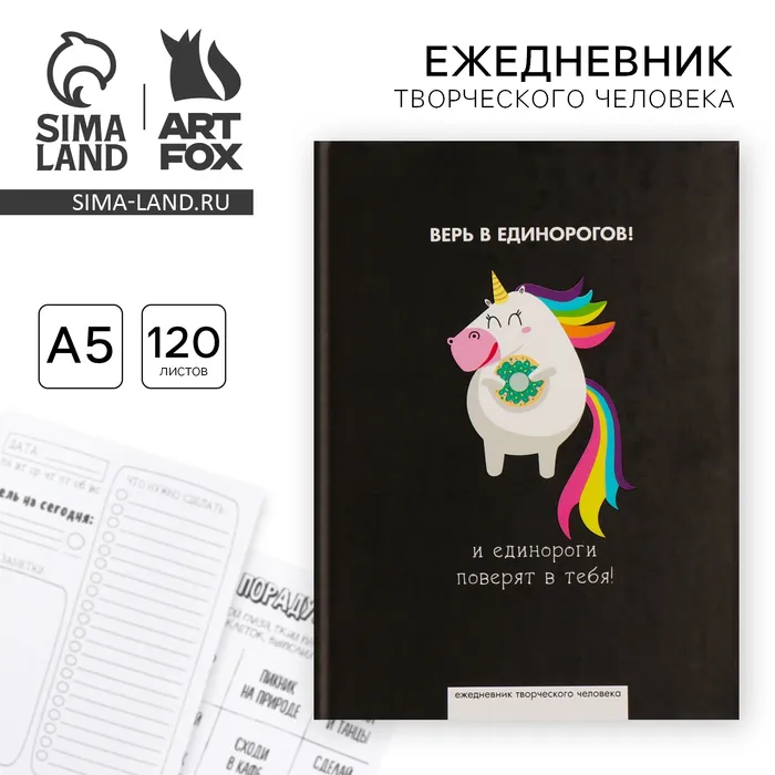 Ежедневник творческого человека с заданиями А5, 120 л. В твердой обложке «Верь в единорогов» — Характеристики