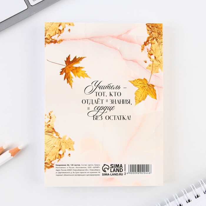 Ежедневник «Учителю: Золотой учитель», формат А6, 120 листов, мягкая обложка — Характеристики