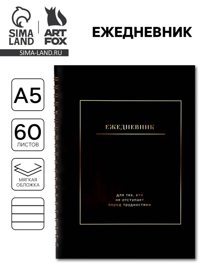 Ежедневник в мягкой обложке А5, 60 л. На скрытом гребне "Черный" — Характеристики