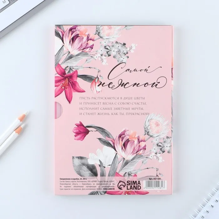 Ежедневник в мягкой обложке А5, 80 л, в подарочной коробке «8 Марта. Розовый» — Характеристики