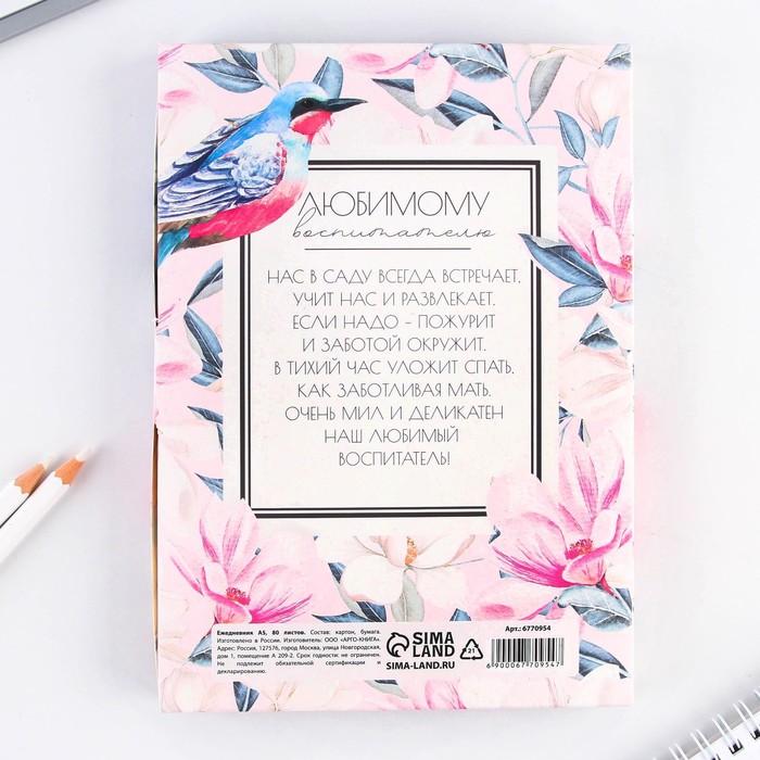 Ежедневник в подарочной коробке «Любимому воспитателю» формат А5, 80 листов, твердая обложка — Характеристики