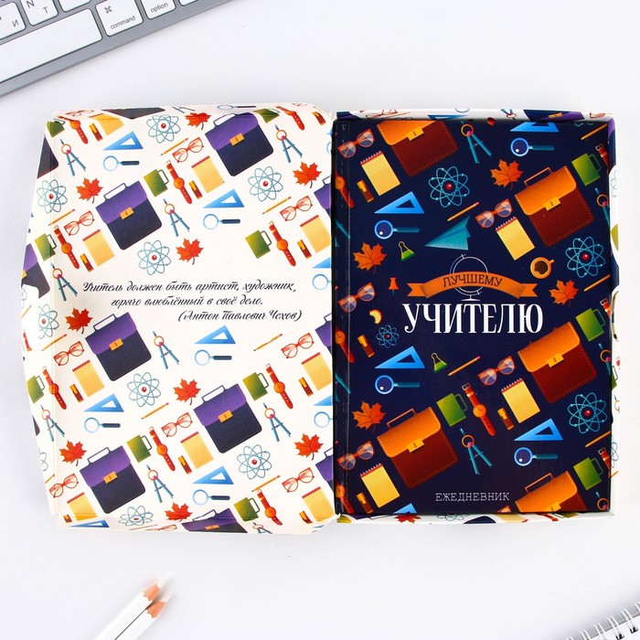 Ежедневник в подарочной коробке «Лучшему учителю», формат А5, 80 листов, твердая обложка — Характеристики