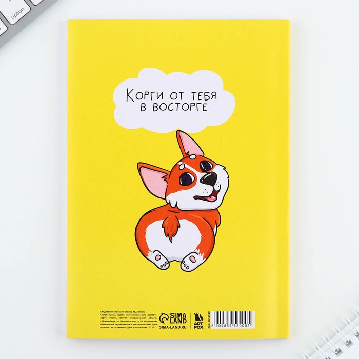Ежедневник в тонкой обложке А5, 72 листа «Корги» — Характеристики