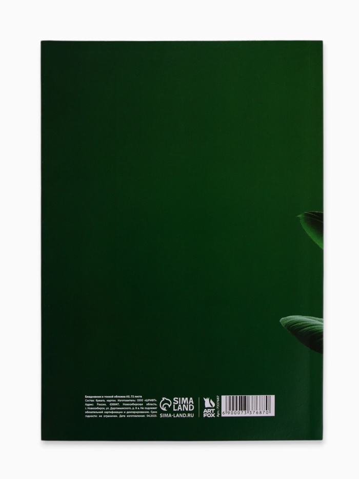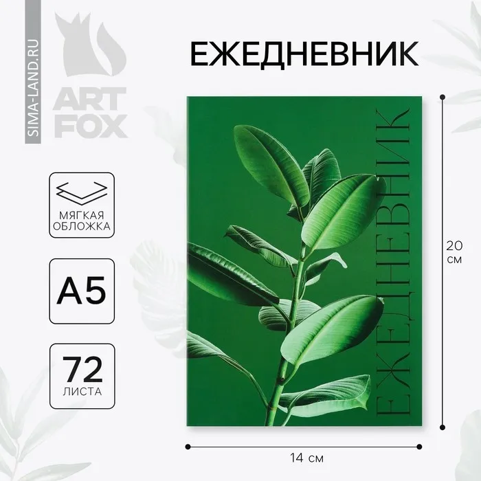 Ежедневник в тонкой обложке А5, 72 листа «Зеленый фикус» — Характеристики