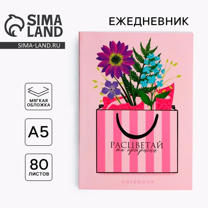 Ежедневник в тонкой обложке А5, 80 л «Расцветай» — Характеристики