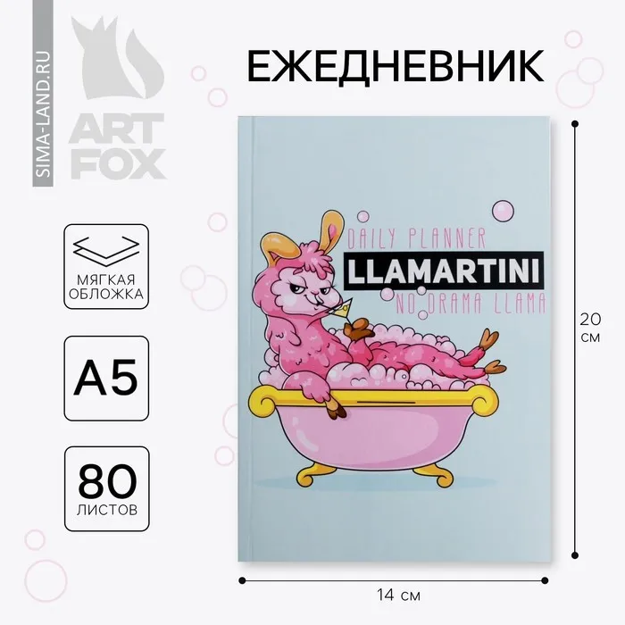 Ежедневник в тонкой обложке LLamartini, А5, 80 листов — Характеристики