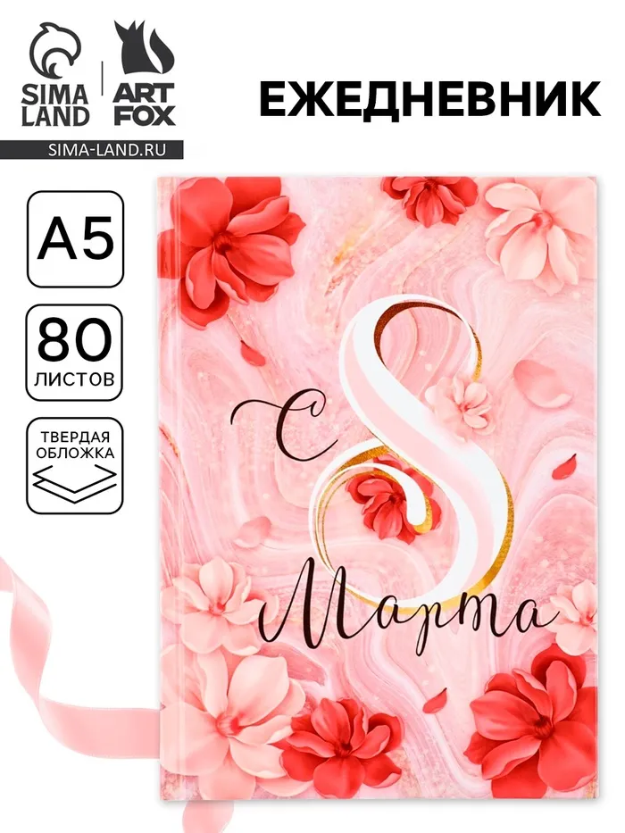 Ежедневник в твердой обложке А5, 80 л «С 8 МАРТА» — Характеристики