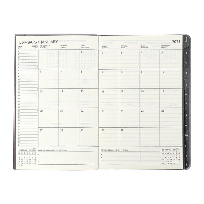 Еженедельник датир 2025г мягк обл иск кож А5 80л ESCALADA, бл тис, кр бл 70 г/м², чёрный