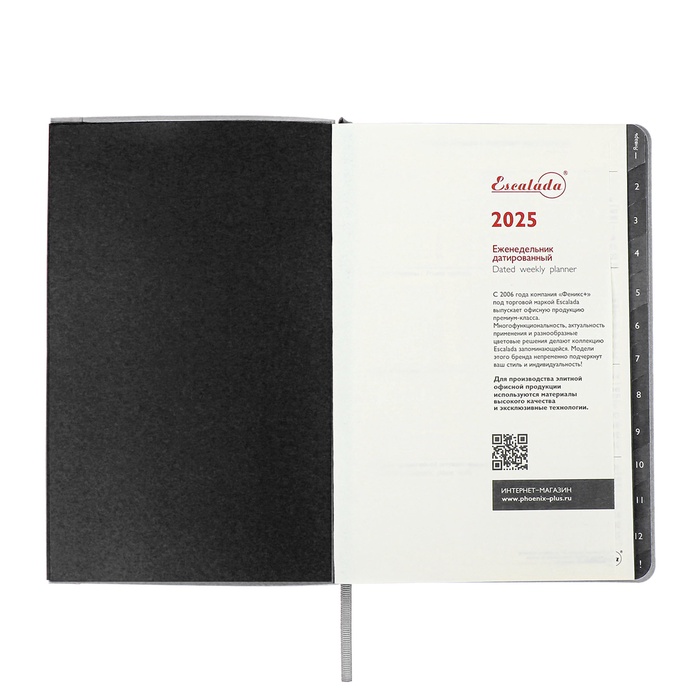 Еженедельник датир 2025г мягк обл иск кож А5 80л ESCALADA, бл тис, кр бл 70 г/м², чёрный — Характеристики