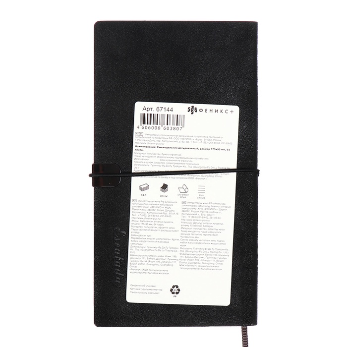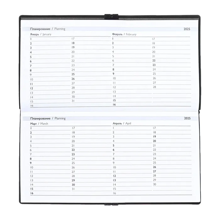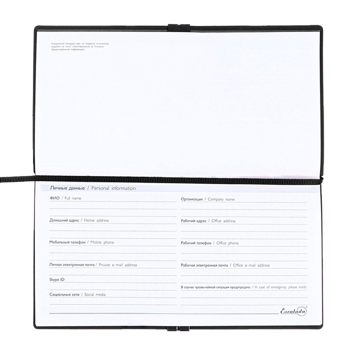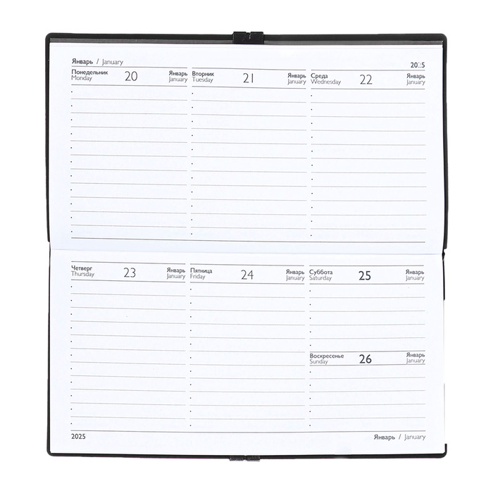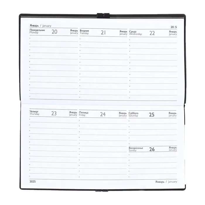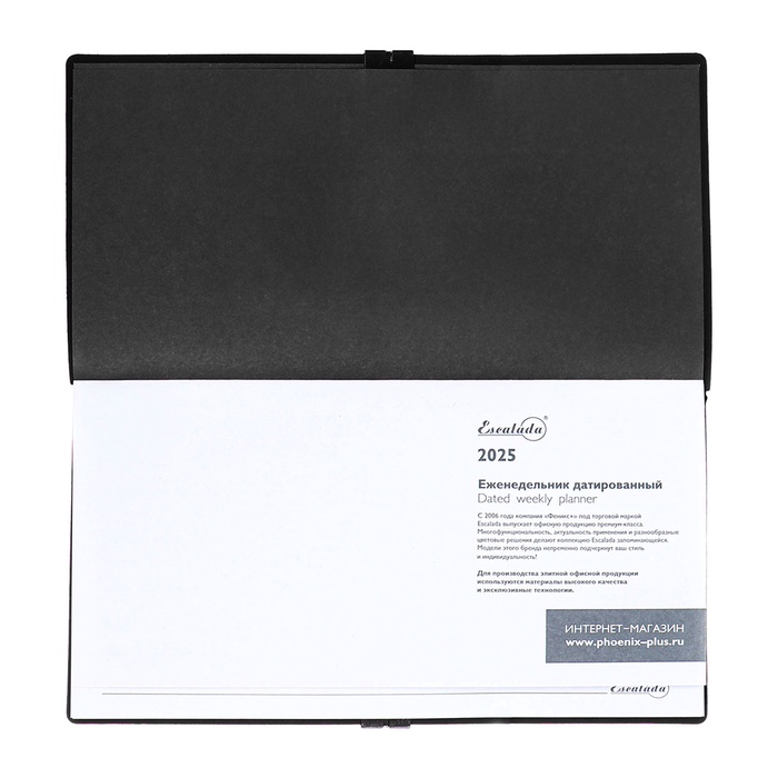 Еженедельник датированный 2025 года, ESCALADA, 175×95 мм, мягкая обложка с искусственной кожи, 64 листа, блинтовое тиснение, блок 70, чёрный — Характеристики