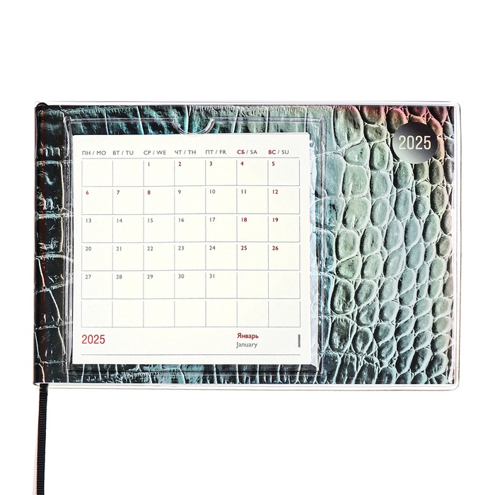 Еженедельник датированный 2025 года, ESCALADA "Змея", 180 х 127 мм, мягкая обложка, ПВХ, 64 листа, блок 70, металлик — Характеристики