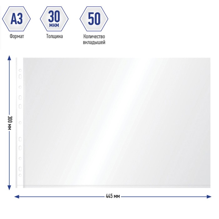 Файл-вкладыш А3, 30 мкм, Calligrata, глянцевый, горизонтальный, 50 штук — Характеристики