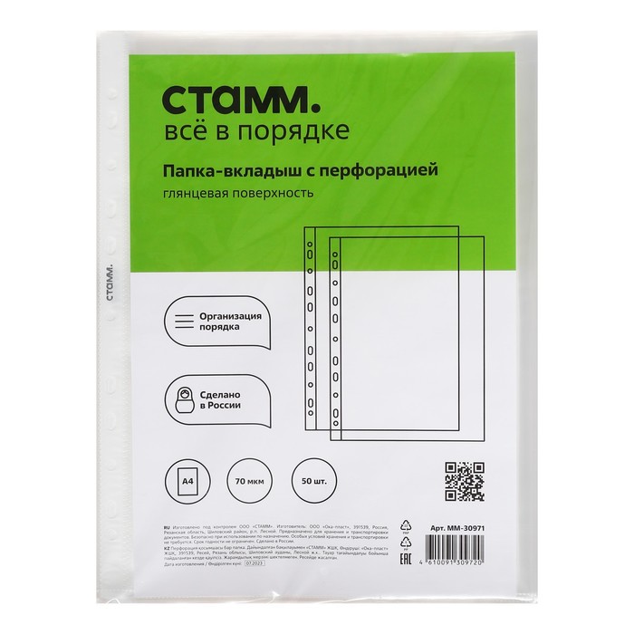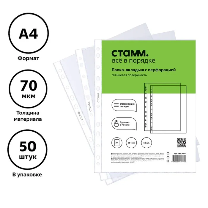 Файл-вкладыш А4, 70 мкм Стамм, глянцевый, вертикальный, 50 штук — Характеристики