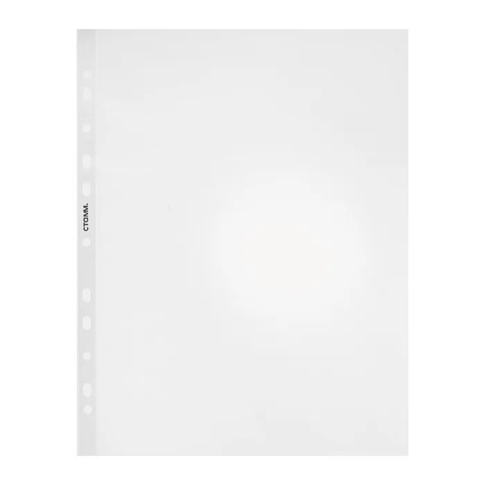 Перфорация на боковой части позволяет разместить изделие в папке с любым кольцевым механизмом или скоросшивателе. Упакованы в пакет по 50 штук.