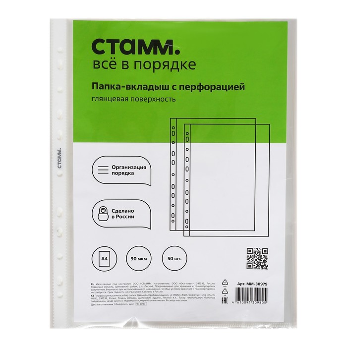 Файл-вкладыш А4, 90 мкм, Стамм, глянцевый, вертикальный, 50 штук — Характеристики