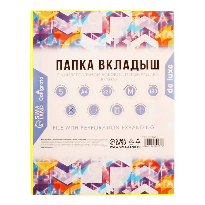 Файл-вкладыш А4.180 мкм, Calligrata TOP, ПВХ, с расширением, матовый, вертикальный, 5 штук, дынно-желтый — Характеристики