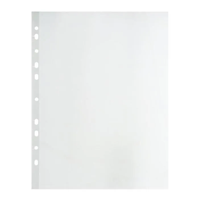 Перфорированные папки-файлы Calligrata - оптимальное решение для различных государственных учреждений, офисов коммерческих предприятий. Предназначены для хранения и защиты печатных документов. Папка-вкладыш (файлы) формата А4 с вертикальным размещением содержат универсальную перфорацию, позволяющая разместить изделие в папке с любым кольцевым механизмом или скоросшивателе, а также имеют гладкую поверхность и прочные швы. Подходит для хранения до 30 листов в 1 папке-файле. В комплекте 100 штук.