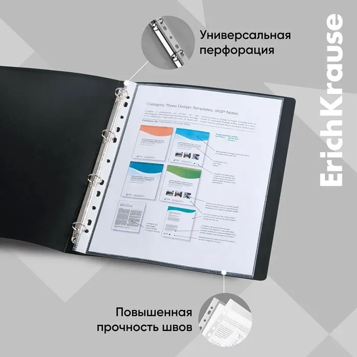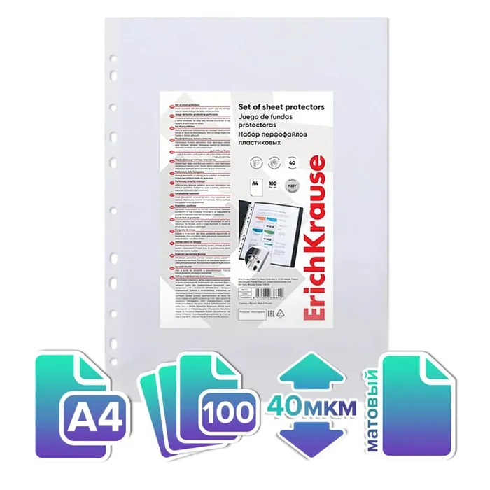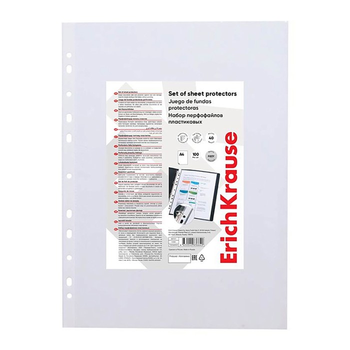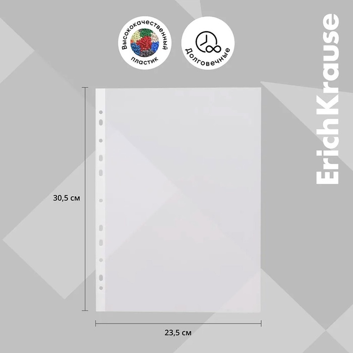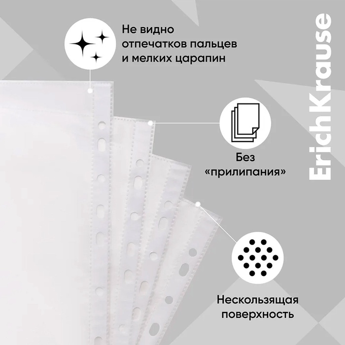 Файл - вкладыш ErichKrause Fizzy Clear, А4, 40 мкм, прозрачный, тиснение «апельсиновая корка», вертикальный, вмещает до 50 листов, 100 штук — Характеристики