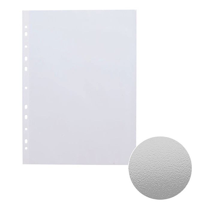 Перфофайл формата А4 из высококачественного прозрачного пластика с текстурой поверхности "апельсиновая корка", на которой не видно отпечатков пальцев и мелких царапин. Предназначен для подшивки бумаг в папки без перфорирования дыроколом. Перфофайл вмещает до 50 бумажных листов.