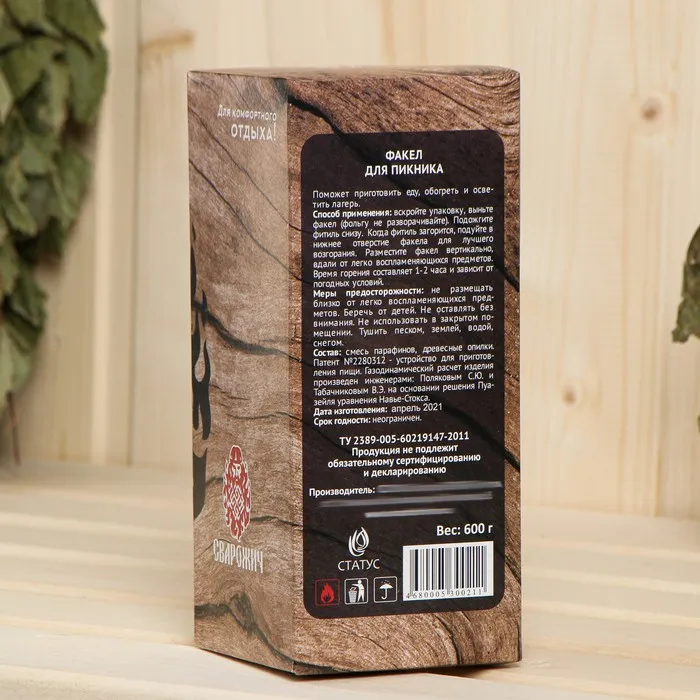 - Разместите факел вертикально, вдали от легко воспламеняющихся предметов.