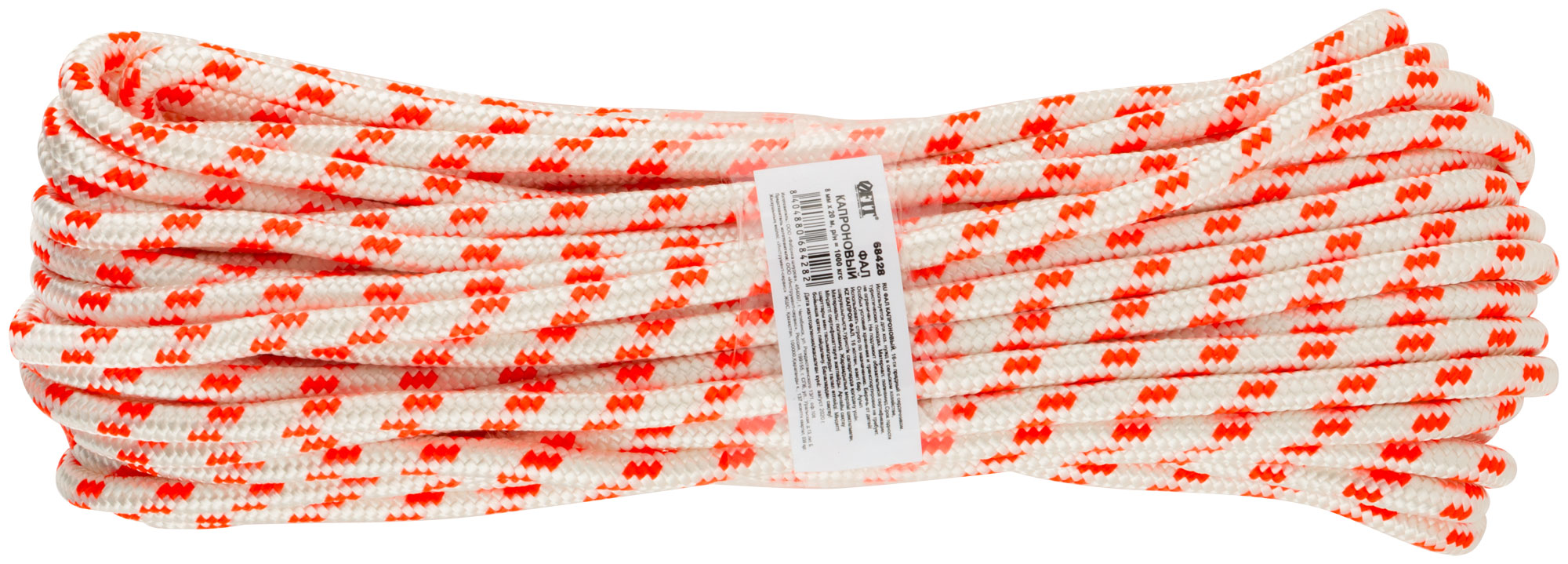 Капроновый фал от бренда FIT способен выдерживать нагрузку до 880 кгс, что делает его идеальным выбором для разнообразных задач на открытом воздухе и в хозяйстве.