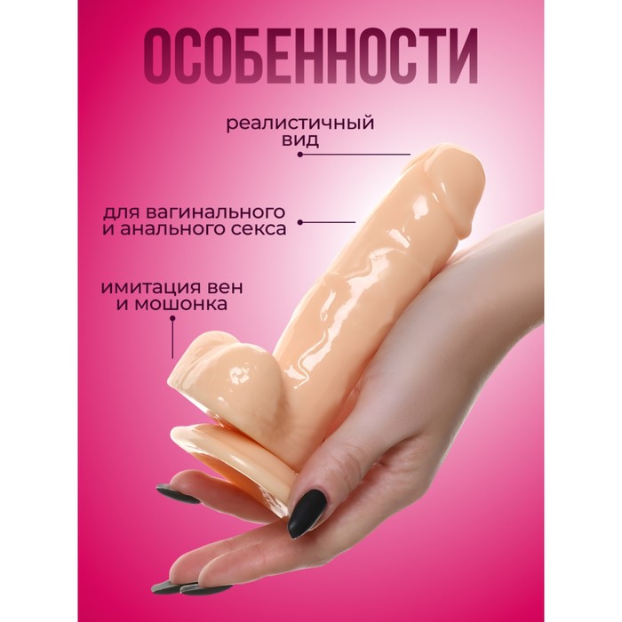 Реалистичный фаллоимитатор на присоске, выполнен из медицинского силикона. Имитация вен и мошонки обеспечит дополнительную стимуляцию. Благодаря присоске фаллоимитатор можно прикрепить на любую поверхность. Подходит как для вагинального, так и для анального секса.