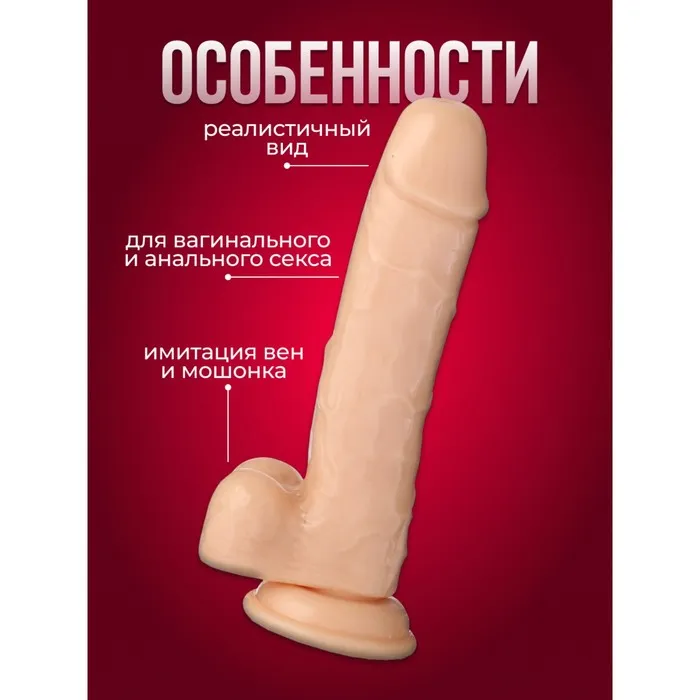 Реалистичный фаллоимитатор на присоске, выполнен из медицинского силикона. Имитация вен и мошонки обеспечит дополнительную стимуляцию. Благодаря присоске фаллоимитатор можно прикрепить на любую поверхность. Подходит как для вагинального, так и для анального секса.