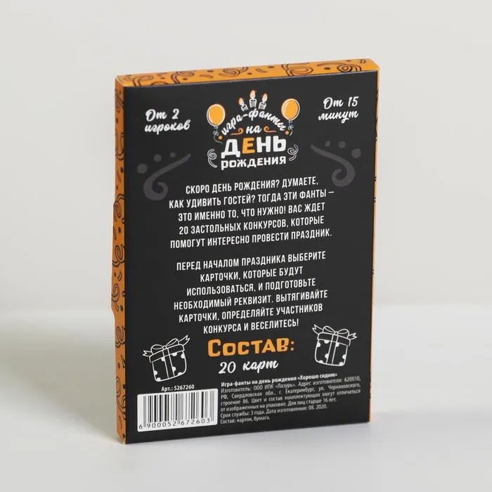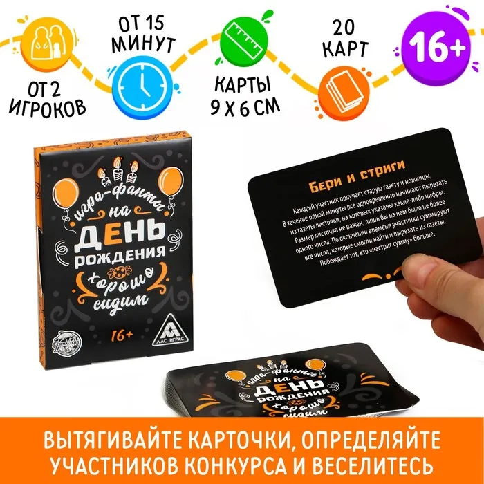 Скоро день рождения? Думаете, как удивить гостей? Тогда эти фанты — это именно то, что нужно! Вас ждёт 20 застольных конкурсов, которые помогут интересно провести праздник. Перед началом мероприятия выберите карточки, которые будут использоваться, и подготовьте необходимый реквизит. Вытягивайте карточки, определяйте участников конкурса и веселитесь!