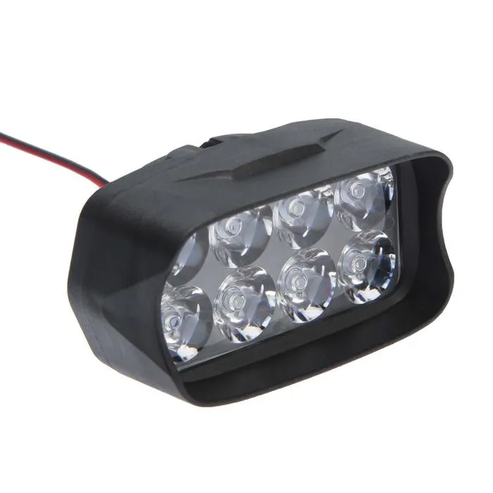 Фара cветодиодная для мототехники, 8 LED, 8 Вт, направленный свет. Незаменимый помощник на дороге при движении в темное время суток. Степень защиты IP67 ( 6- Пыль не может попасть в устройство. Полная защита от контакта; 7- 7 Кратковременное погружение на глубину до 1 м. При кратковременном погружении вода не попадает в количествах, нарушающих работу устройства. Постоянная работа в погружённом режиме не предполагается.). Корпус фары выполнен из качественного пластика.