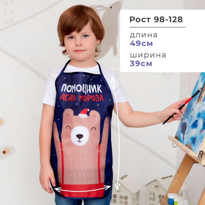 Фартук детский для творчества Этель «Помощник Деда Мороза», 49 х 39 см, 100% полиэстер — Характеристики