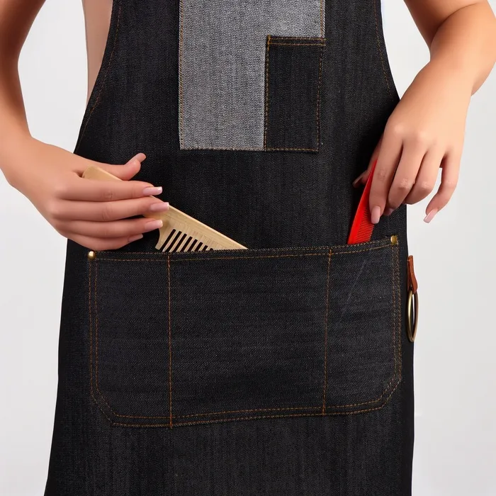 Фартук защищает одежду мастера от загрязнений. Материал легко моется и долго сохраняет свои свойства. Вы можете закрепить на нём парикмахерские инструменты: это ускорит работу и подчеркнёт ваш профессионализм.