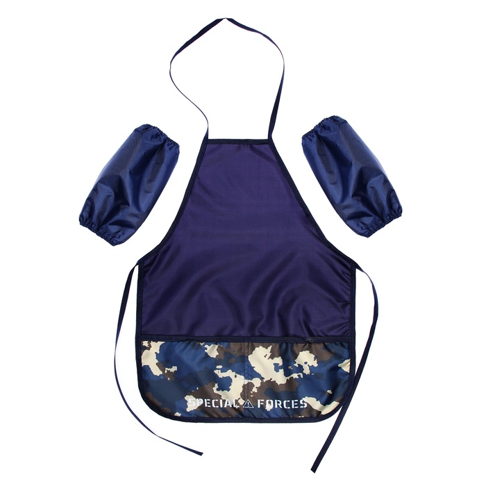 Фартук"Камуфляж" поможет защитить одежду от грязи при занятиях творчеством. В комплекте с фартуком также поставляются нарукавники. Размеры: 485х395/250х160. Цвет: тёмно-синий.
