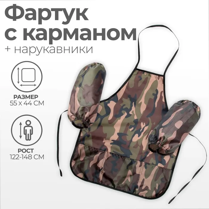 Фартук для труда + нарукавники, 550 х 440/250 х 160 мм, размер M (рост 122-158), Calligrata камуфляж зеленый — Характеристики