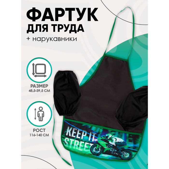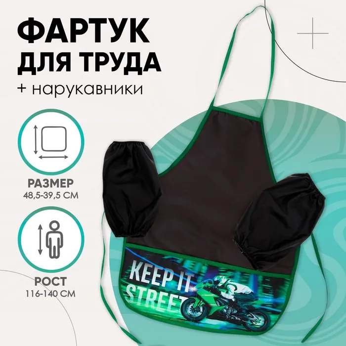 Фартук для труда + нарукавники Calligrata «Мото», 485×395/250×160 мм, рост 116-140 см — Характеристики