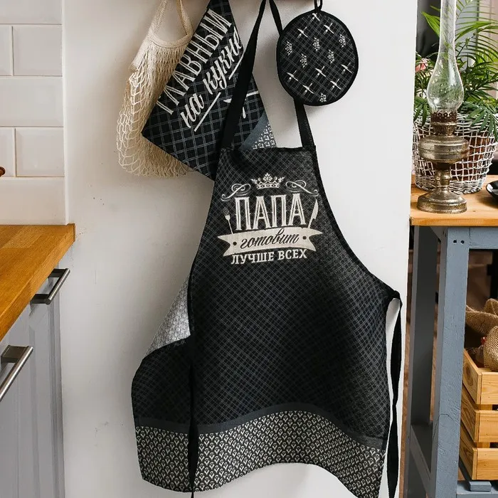 Фартук "Доляна" Папа готовит лучше всех, 60х70 см, 100% хлопок, 160г/м2 — Характеристики