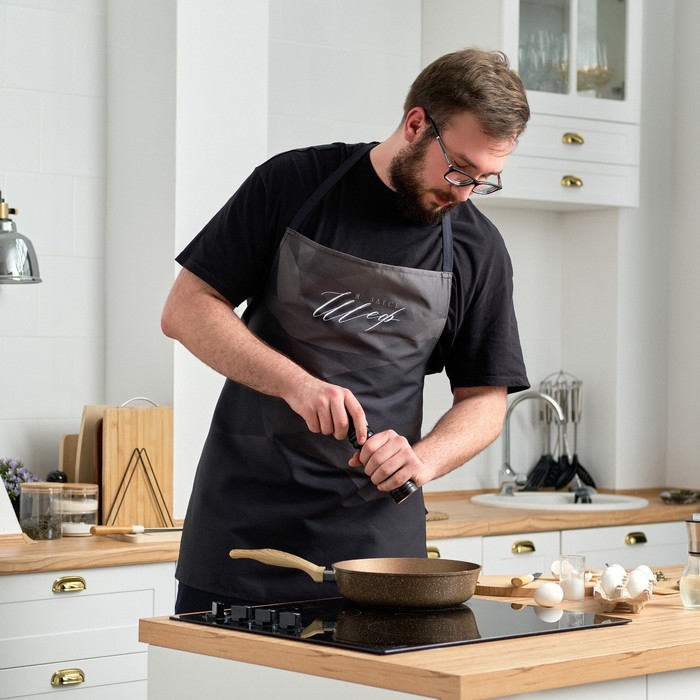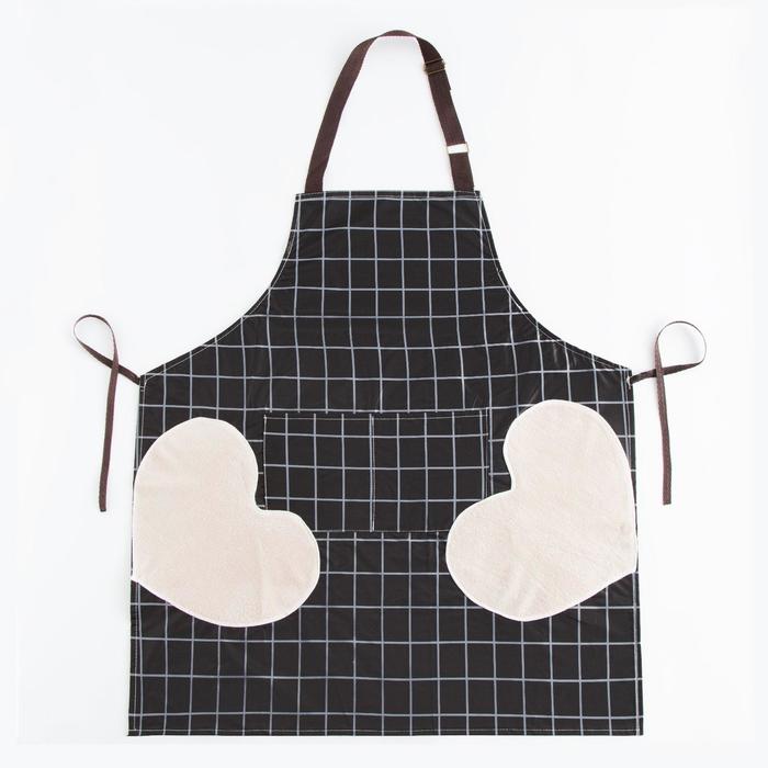 Фартук «Доляна» с карманами, в клетку, чёрный, 70×65 см, 100% п/э — Характеристики