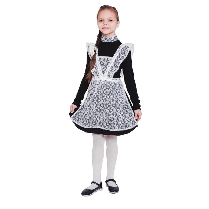 Этот вариант идеально подходит для торжественных мероприятий, таких как последний звонок или выпускной. Нежный гипюр придаст образу изысканности и элегантности. Фартук станет ярким акцентом вашего праздничного наряда.