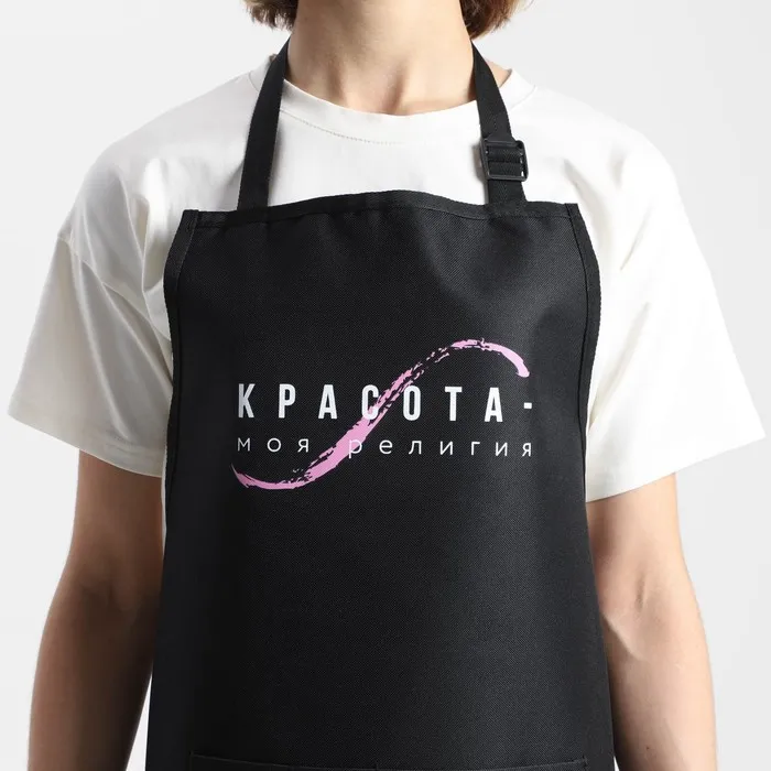 Фартук мастера «Красота - моя религия» прорезиненный с карманами — Характеристики