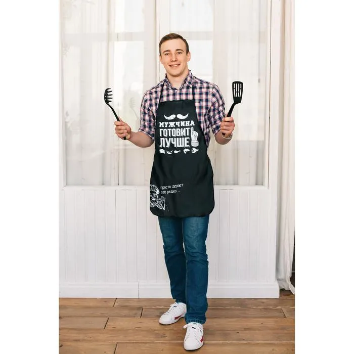 Хотите «подогреть» атмосферу на кухне и сделать процесс приготовления весёлым и зажигательным? Обязательно наденьте фартук «Мужчина готовит лучше» и увидите, как блюда получатся сами собой, а вы будете на высоте без единого пятнышка на одежде! За ним легко ухаживать: для фартука применима ручная и машинная стирка.