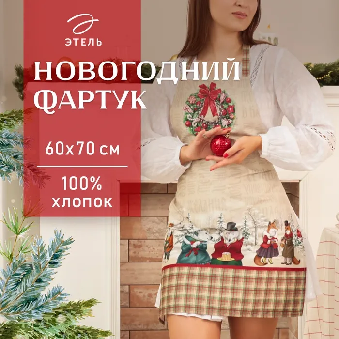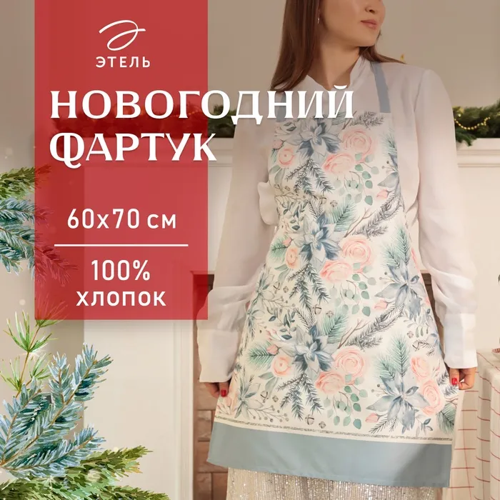 Фартук новогодний "Этель" Серебряные снежинки 60х65 см, 100%хл, 190г/м2 — Характеристики